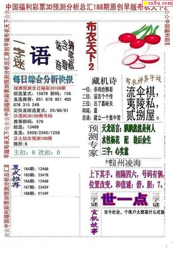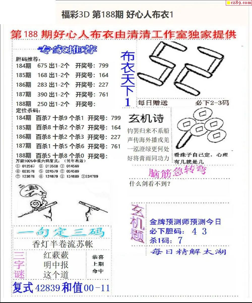 25福彩3d326期真版荆楚玄机彩报