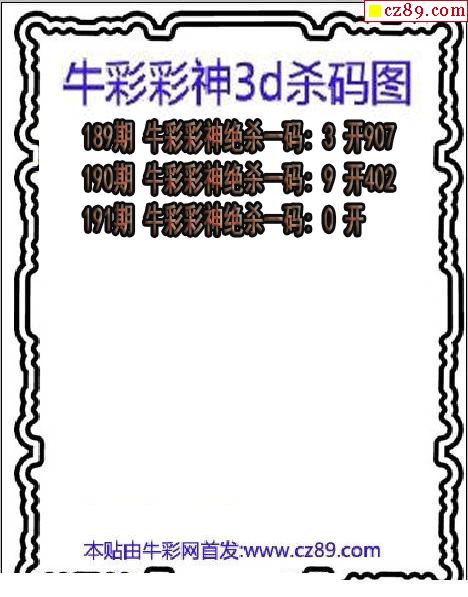 牛彩版3D预测彩报图25年325期打印版