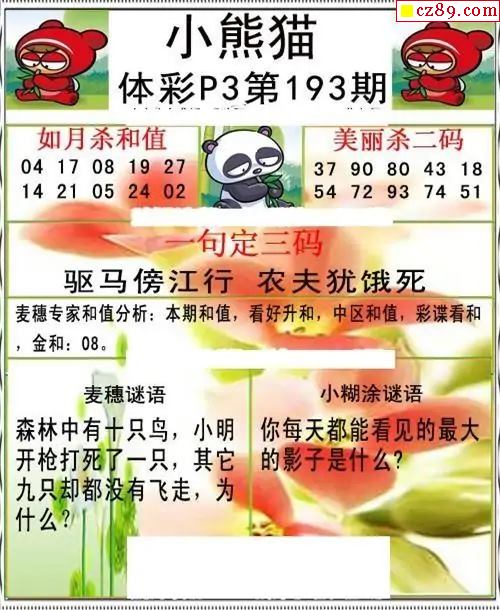 2025年193期牛彩网体彩P3画迷图谜汇总分享
