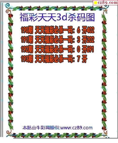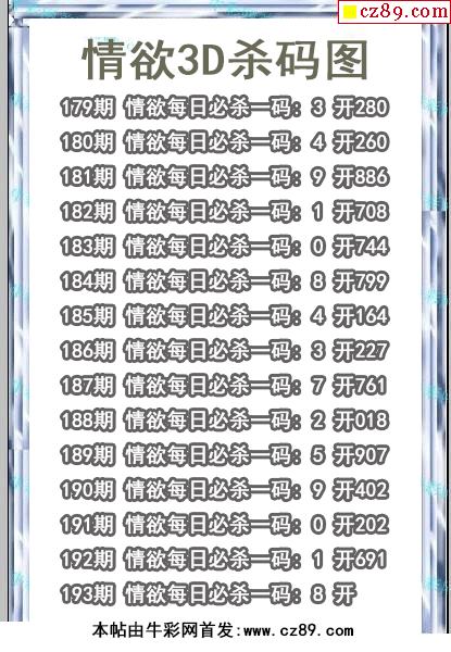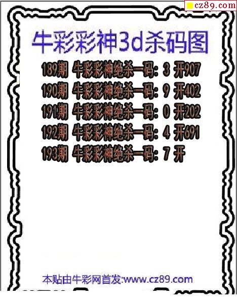 牛彩版3D预测彩报图25年325期打印版