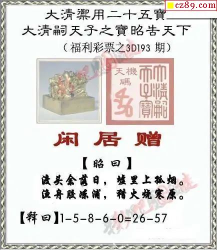 25福彩3d326期真版荆楚玄机彩报