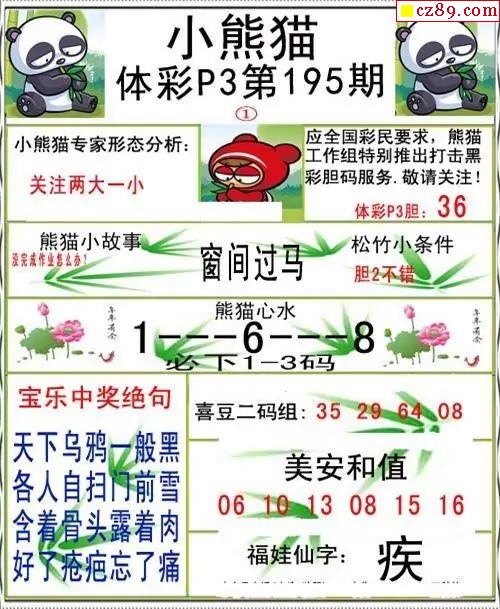 小熊猫2025326期体彩P3图谜