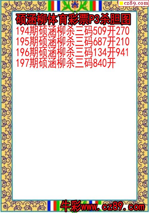 2025年197期体彩P3胆码杀码原创图总汇