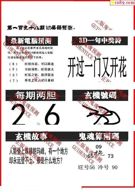 牛彩版3D字谜彩报图26年029期打印版