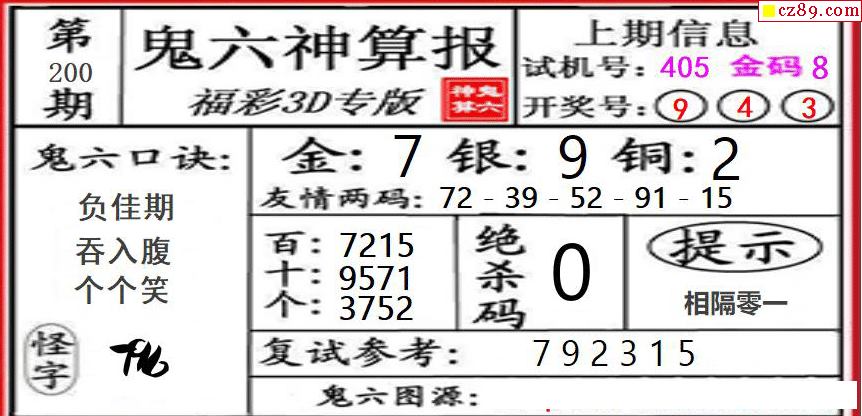 福彩3D2025330期 祁连牧哥百财纳福胆码图谜推荐
