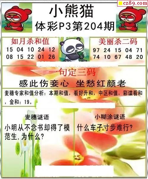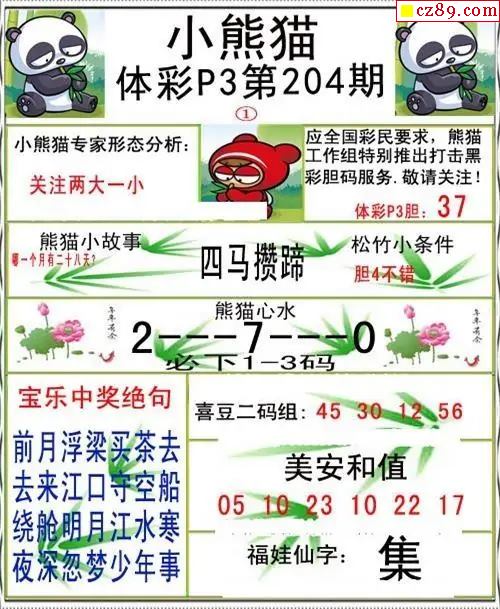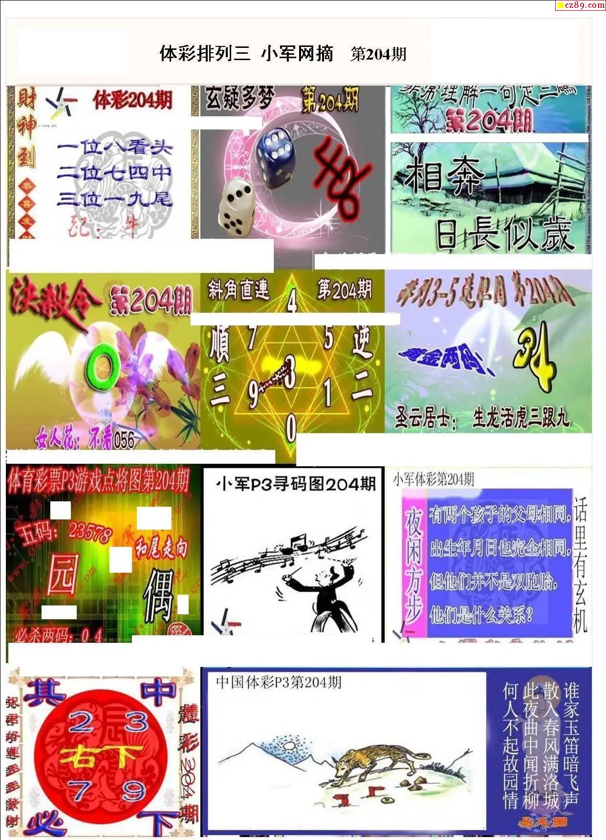 2045年204期牛彩网体彩P3画迷图谜汇总分享