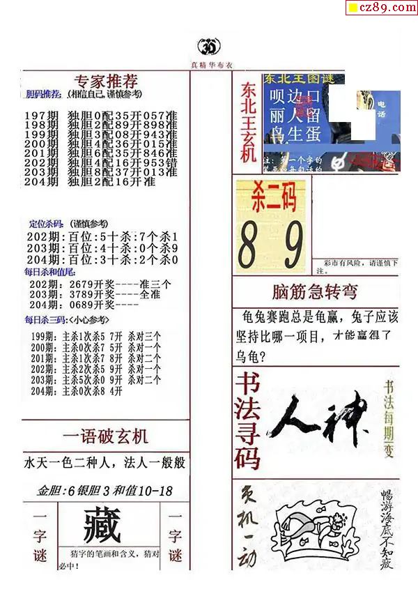 牛彩版3D字谜彩报图25年334期打印版
