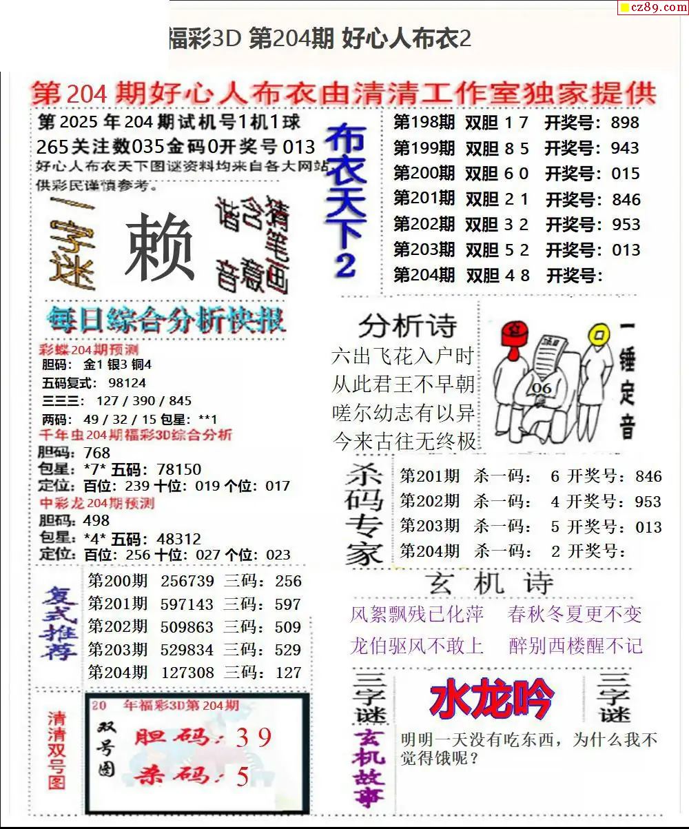 2025204期3d图谜汇总(五)