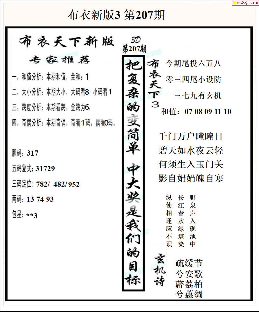 福彩3D2025332期 祁连牧哥百财纳福胆码图谜推荐