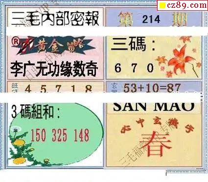 三毛图2025214期3d图谜