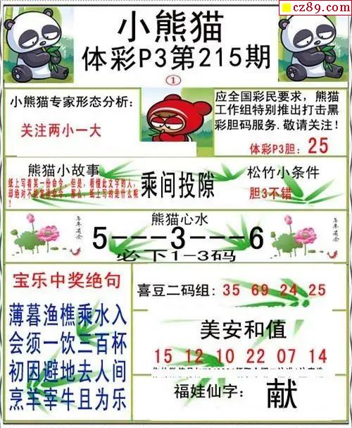 2025年215期牛彩网体彩P3画迷图谜汇总分享