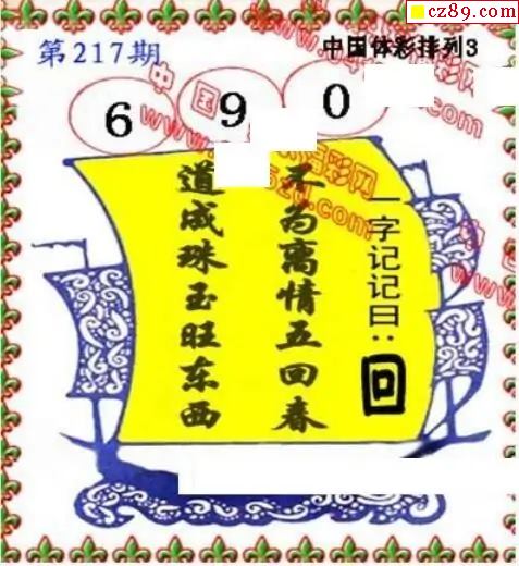 2025年217期牛彩网体彩P3画迷图谜汇总分享