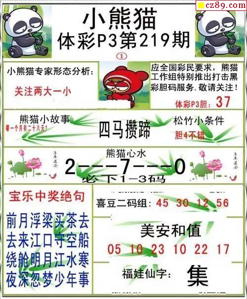 2025年219期牛彩网体彩P3画迷图谜汇总分享