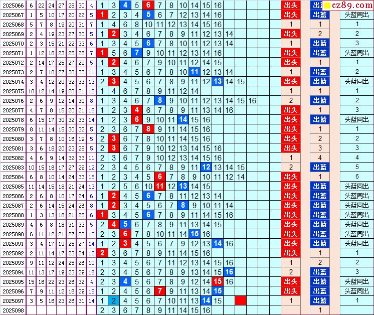双色球2025098期阳光杀蓝汇总图表