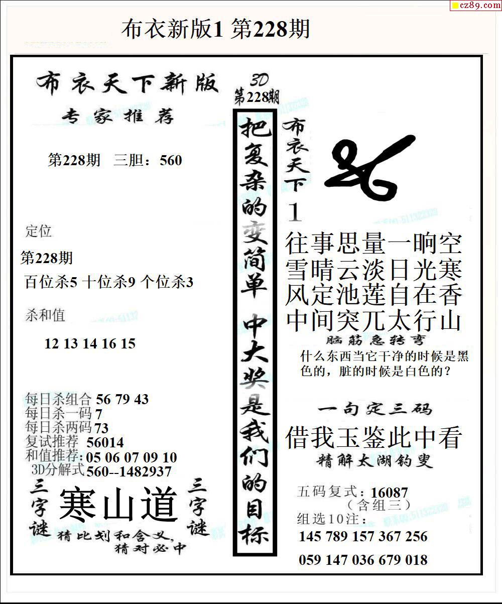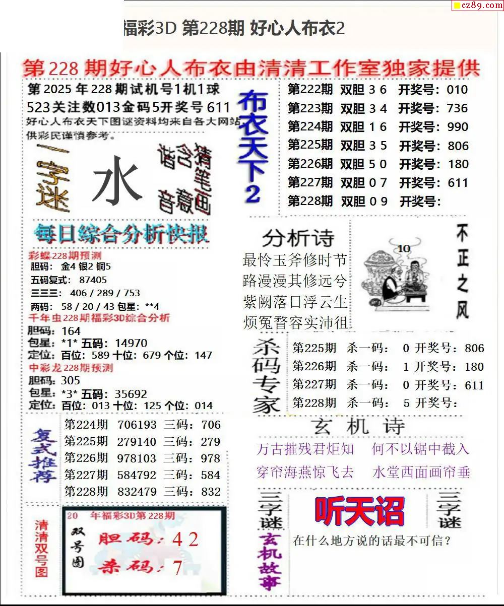 2026066期福彩3D图谜汇总