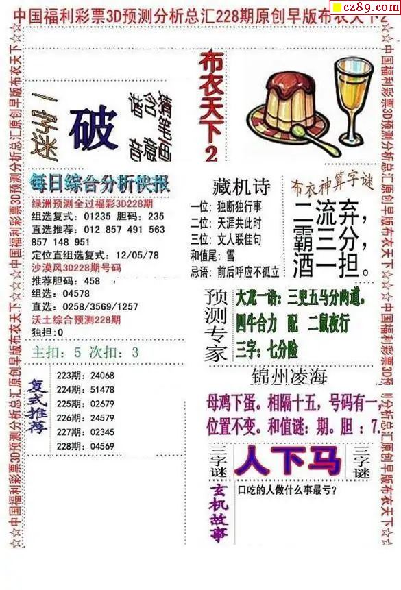 牛彩版3D字谜彩报图26年066期打印版