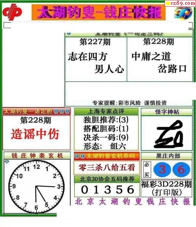 2026066期解太湖3d字图迷汇总报