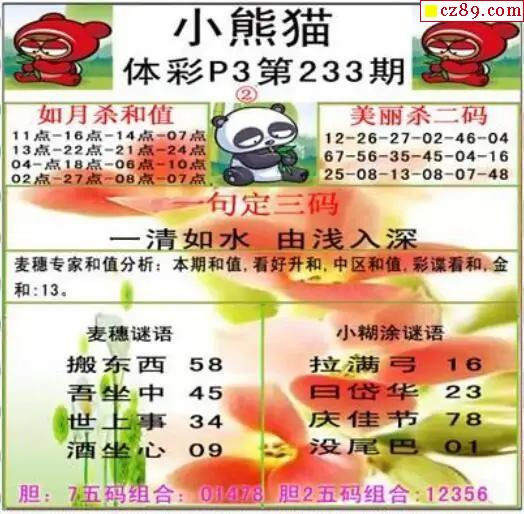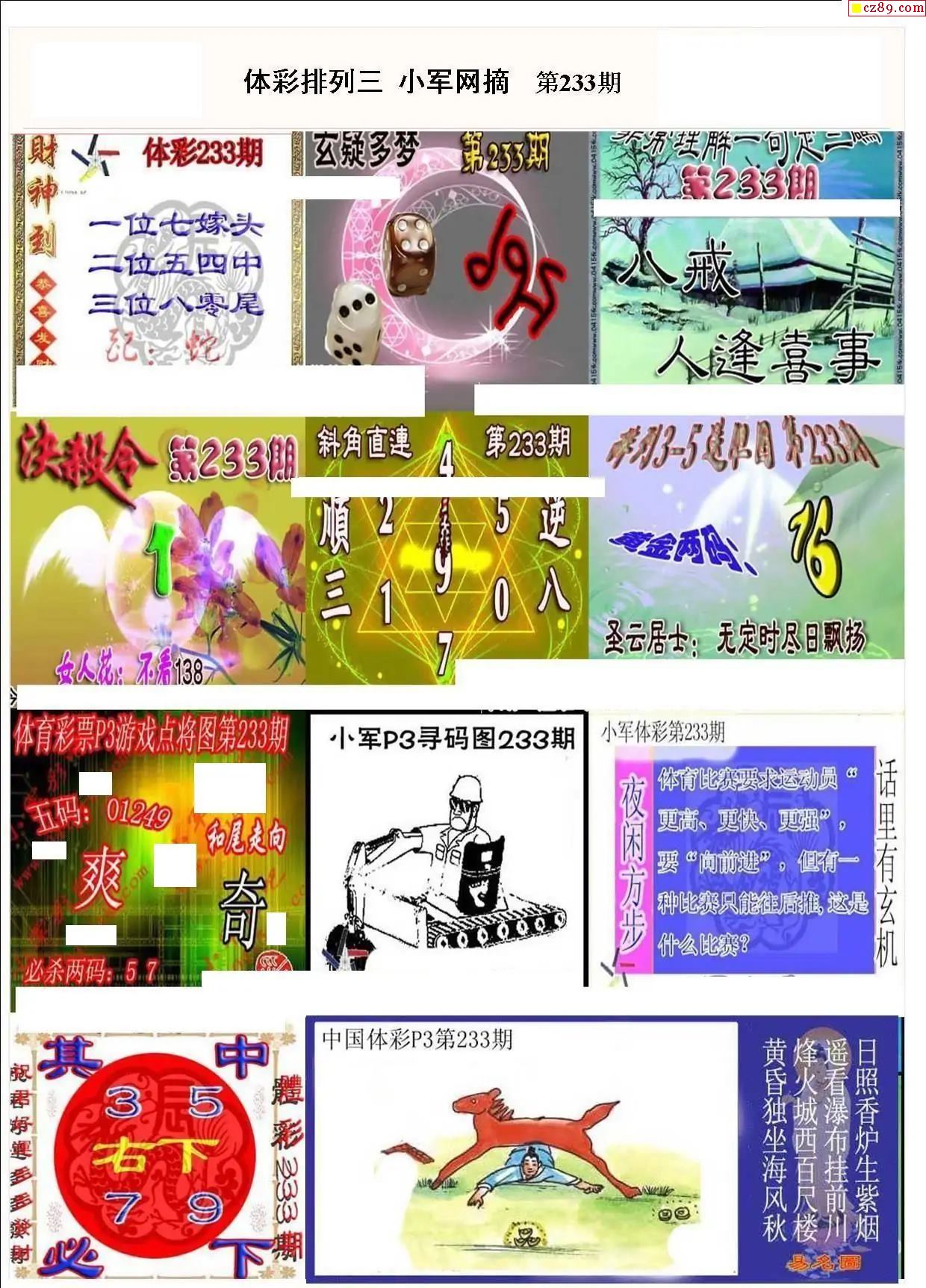 2025年233期牛彩网体彩P3画迷图谜汇总分享