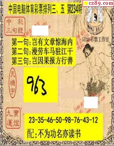 2025年234期牛彩网体彩P3画迷图谜汇总分享