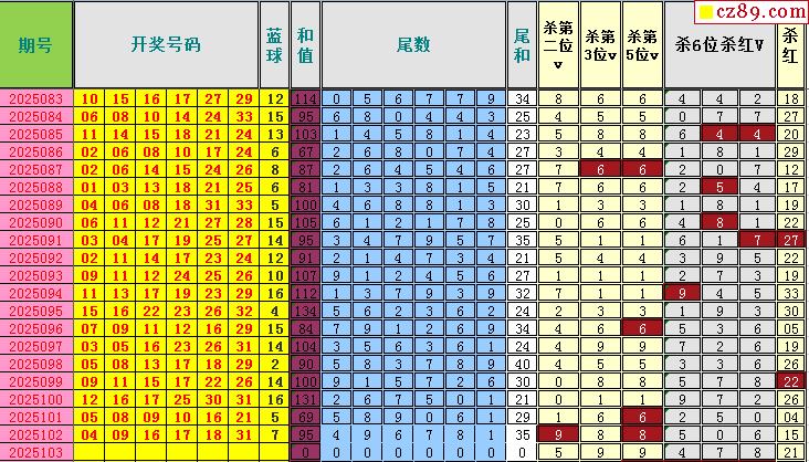 双色球141期 彩宝贝专家红蓝球杀号预测图表