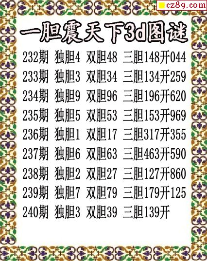 福彩3D2025328期 祁连牧哥百财纳福胆码图谜推荐