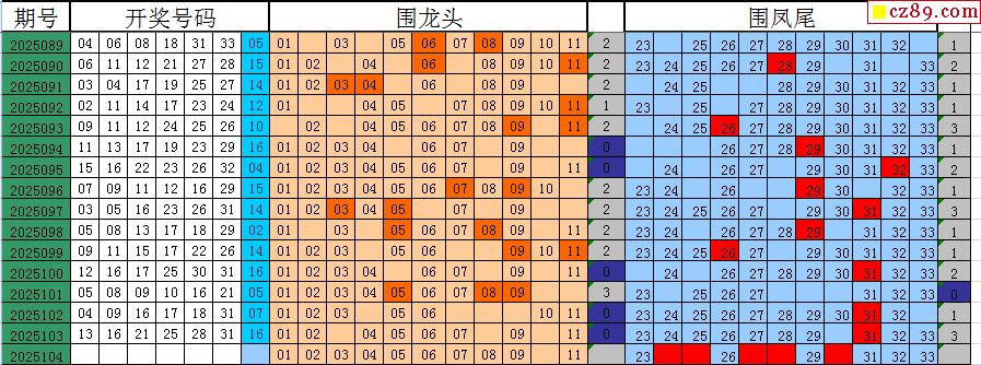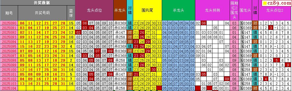 25年104期飞向阳光福彩双色球预测图表汇总