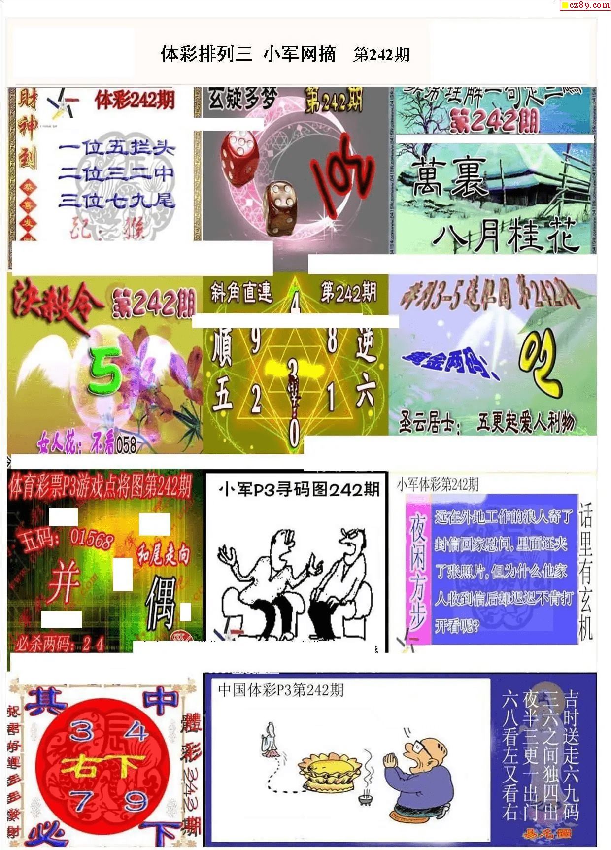 2025年242期牛彩网体彩P3画迷图谜汇总分享