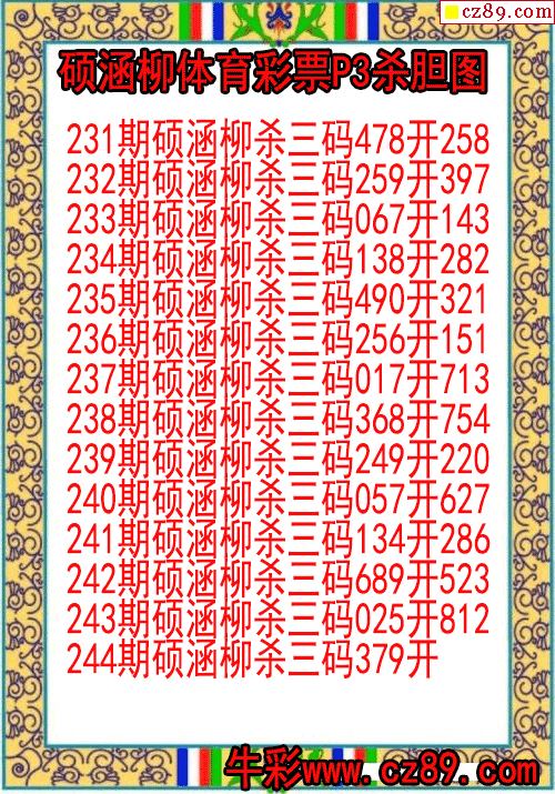 2025年244期体彩P3胆码杀码原创图总汇
