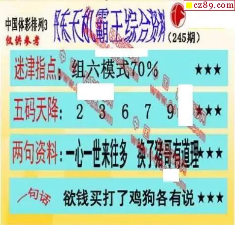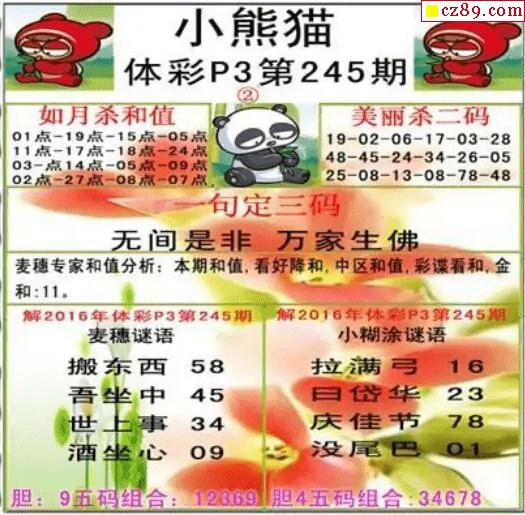 2025年245期牛彩网体彩P3画迷图谜汇总分享