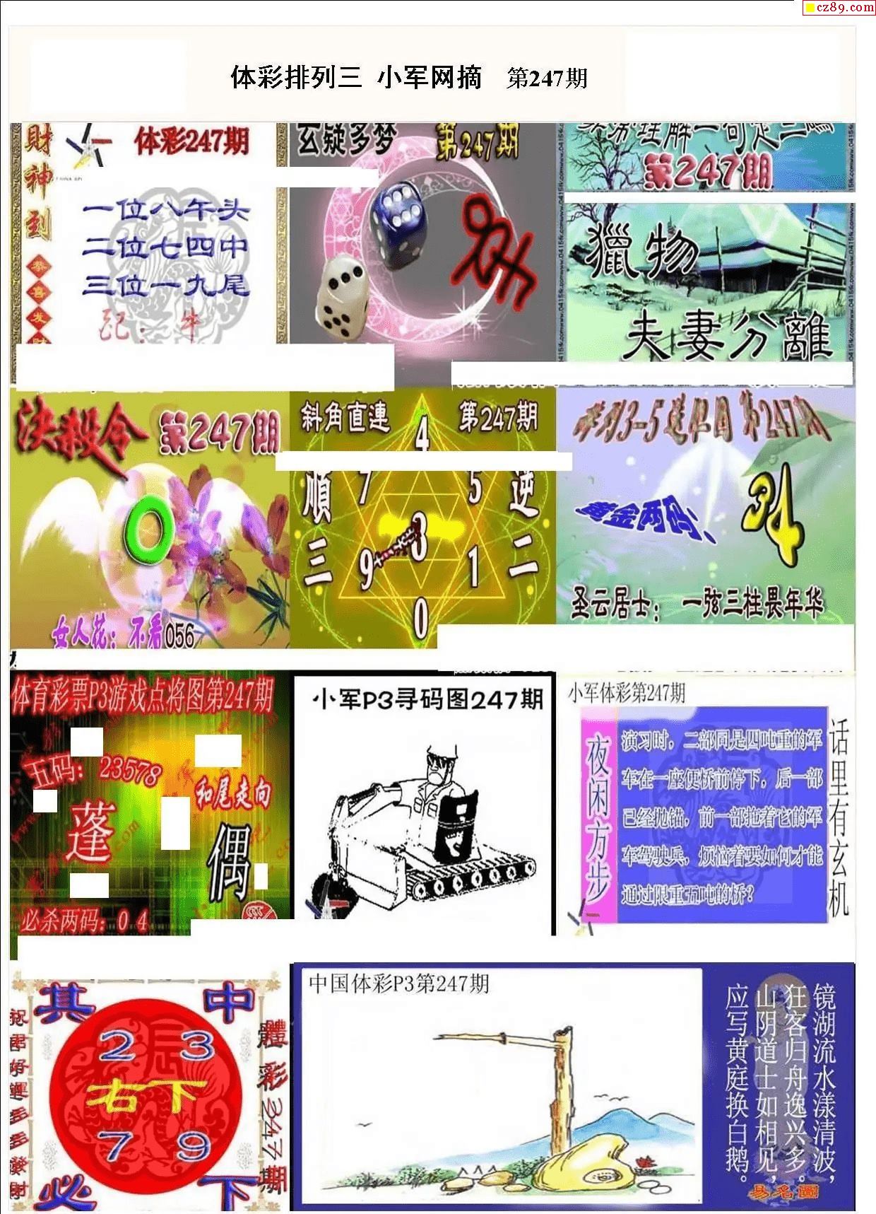 2025年247期牛彩网体彩P3画迷图谜汇总分享