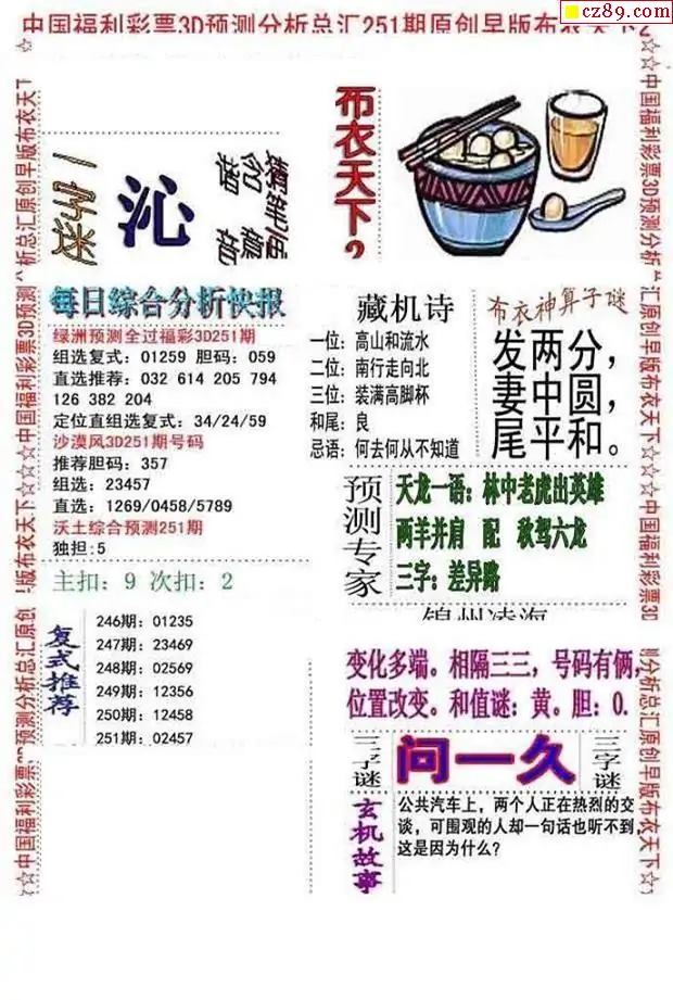 牛彩版3D字谜彩报图26年067期打印版