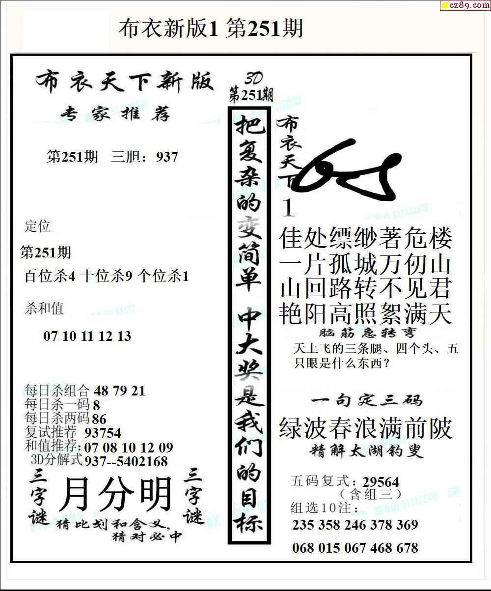2025251期3d字谜图谜总汇