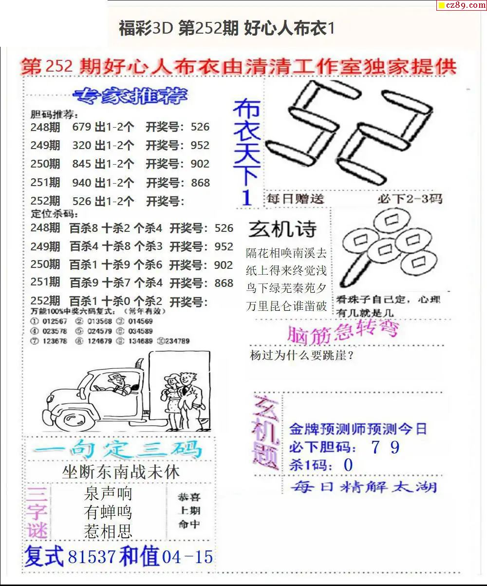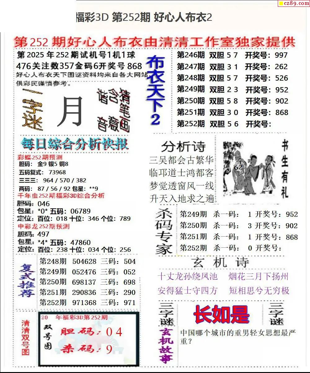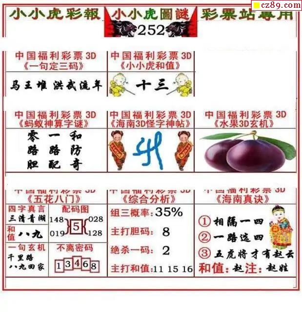 2025330期福彩3D图谜汇总