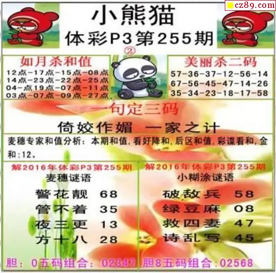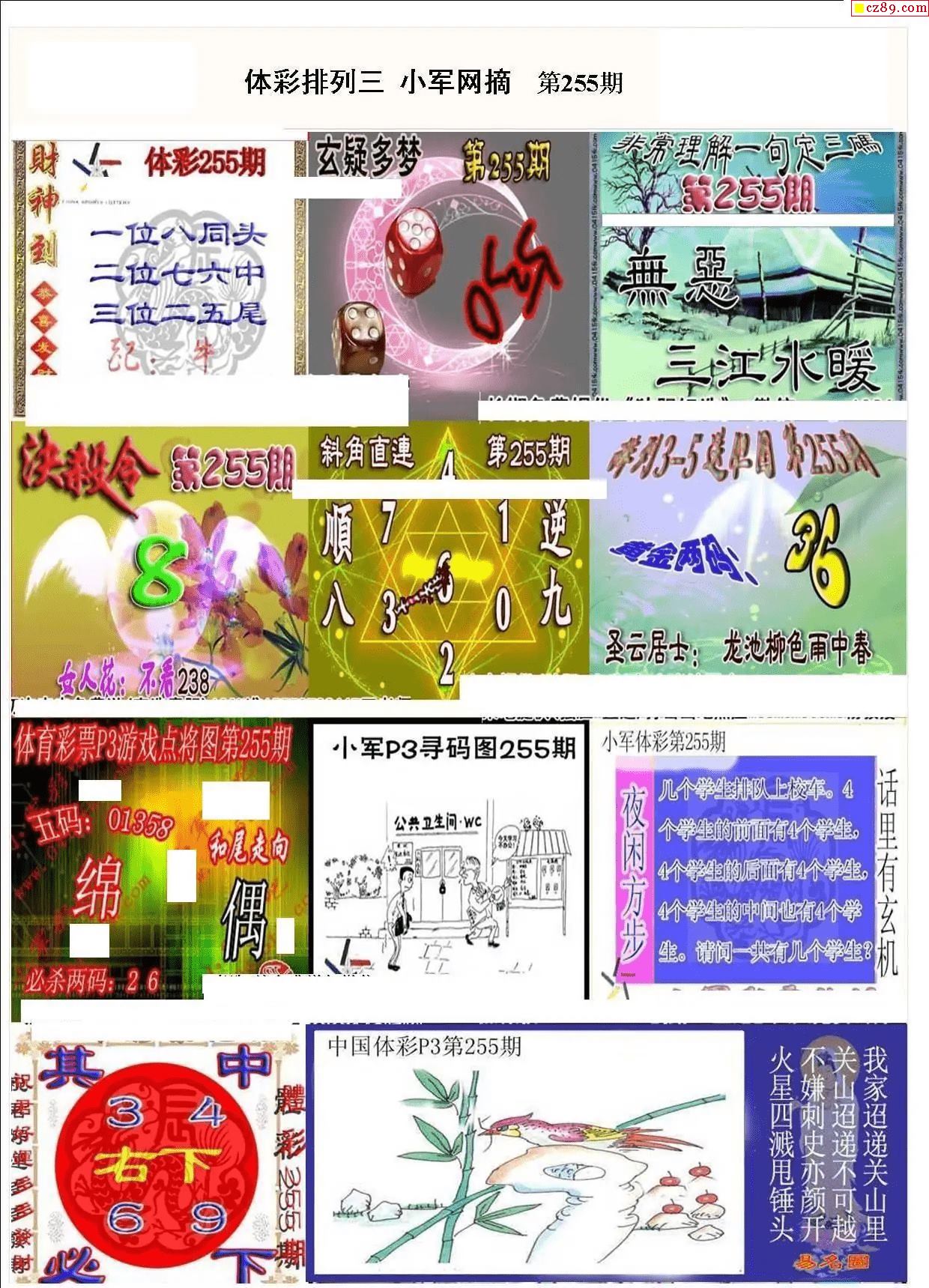 2025年255期牛彩网体彩P3画迷图谜汇总分享