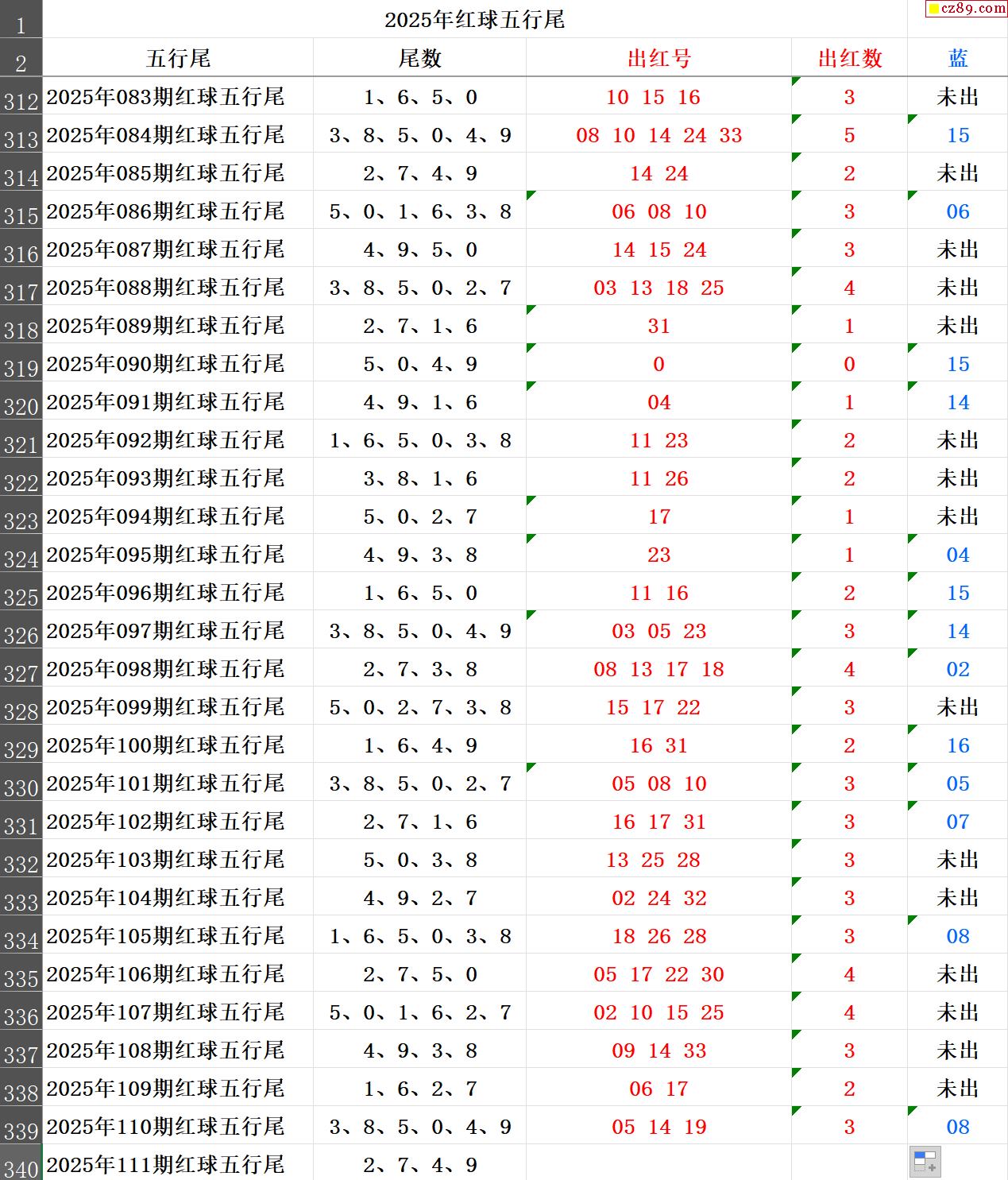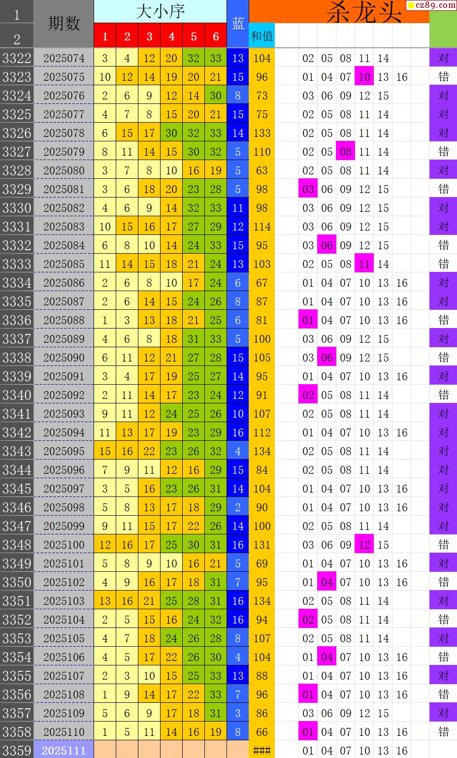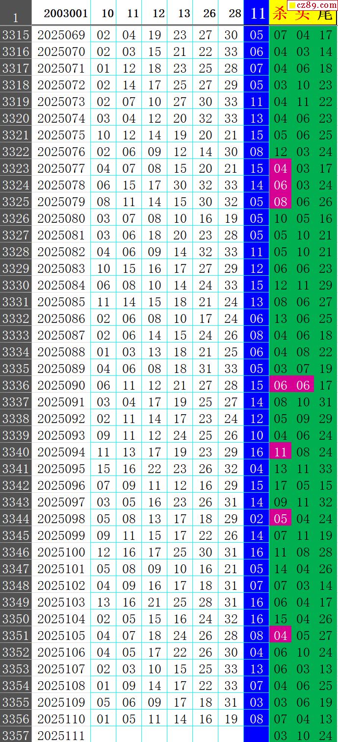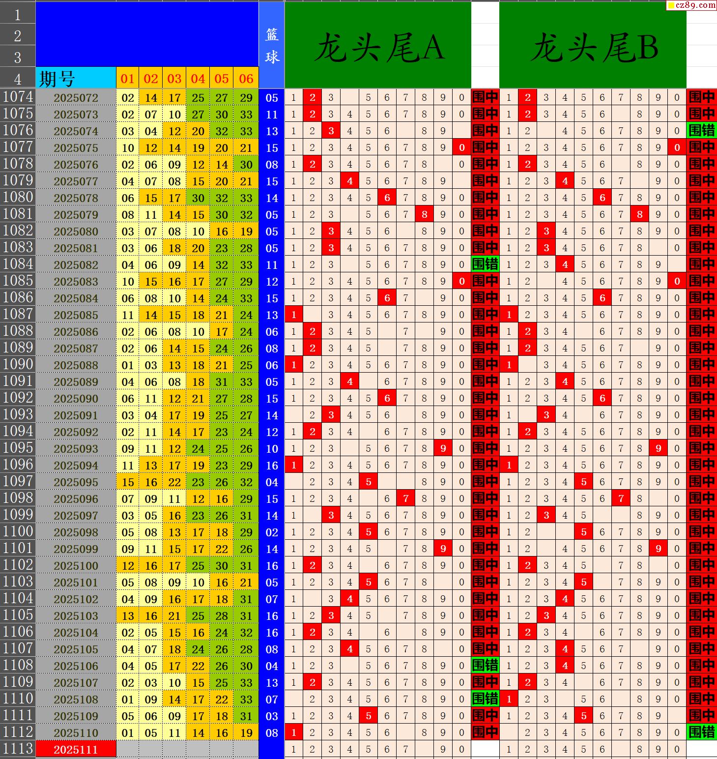 25年111期秋雨龙头凤尾走势图表