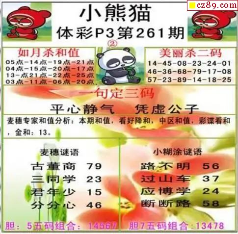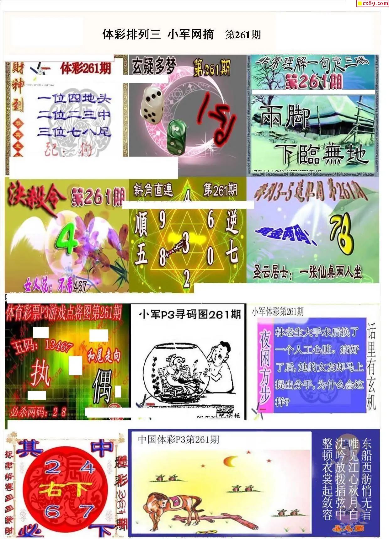 2025年261期牛彩网体彩P3画迷图谜汇总分享
