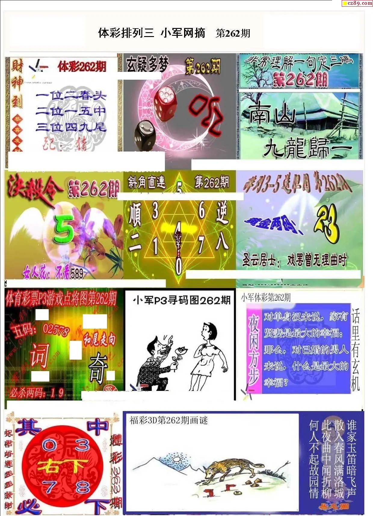 2025年262期牛彩网体彩P3画迷图谜汇总分享