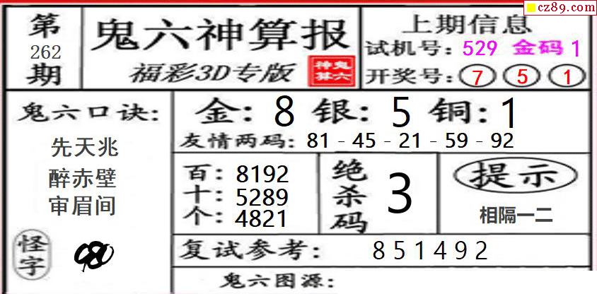 2025262期3D图谜汇总(一)