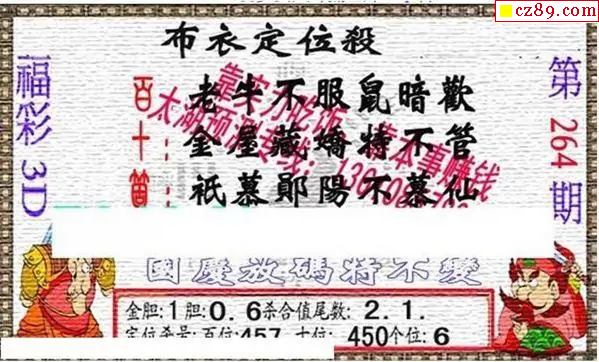 福彩3D2026057期 万家图谜三国胆拖杀图
