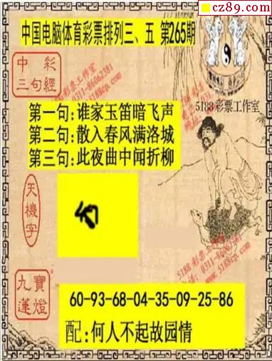 2025年265期牛彩网体彩P3画迷图谜汇总分享