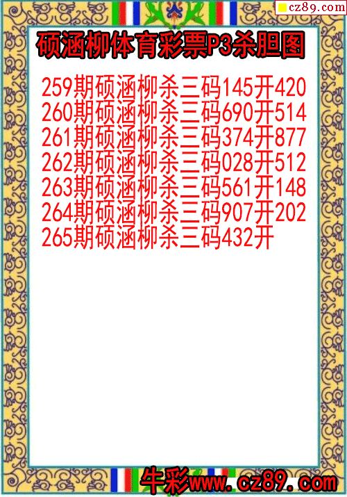 2025年326期牛彩网体彩P3画迷图谜汇总分享