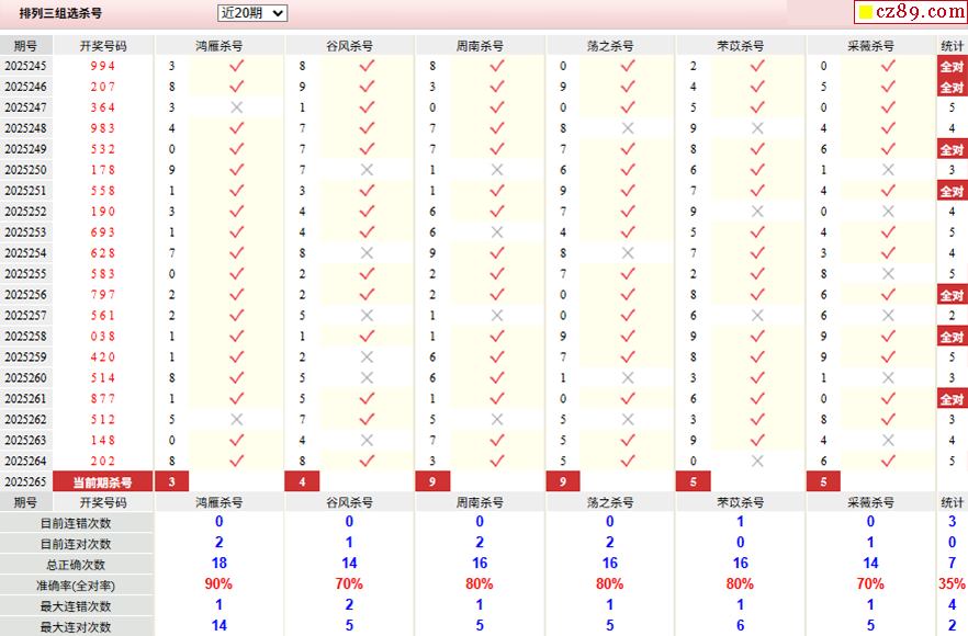 2025年265期体彩P3胆码杀码原创图总汇