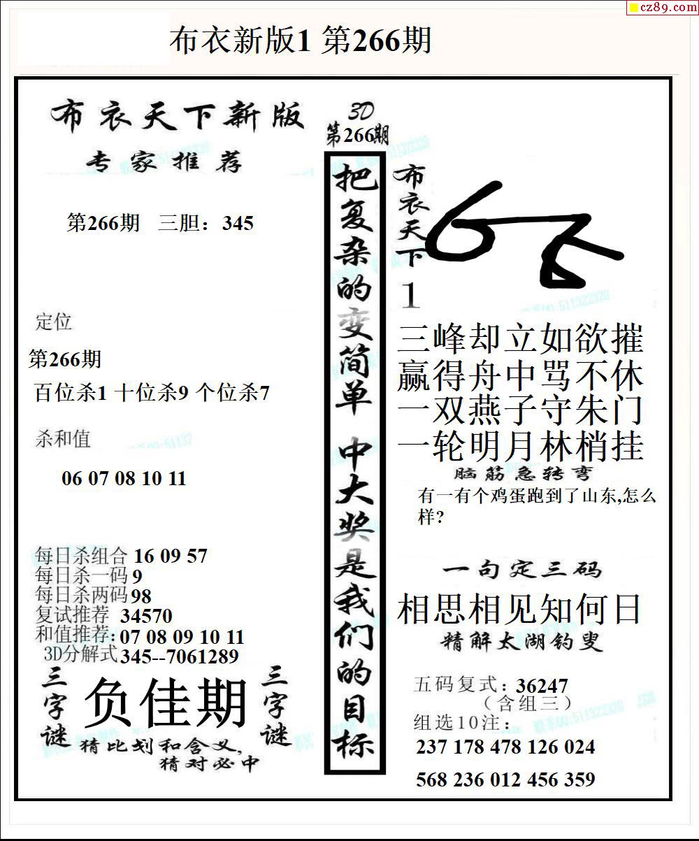 福彩3D2025297期天天彩报A版 天天彩报B版