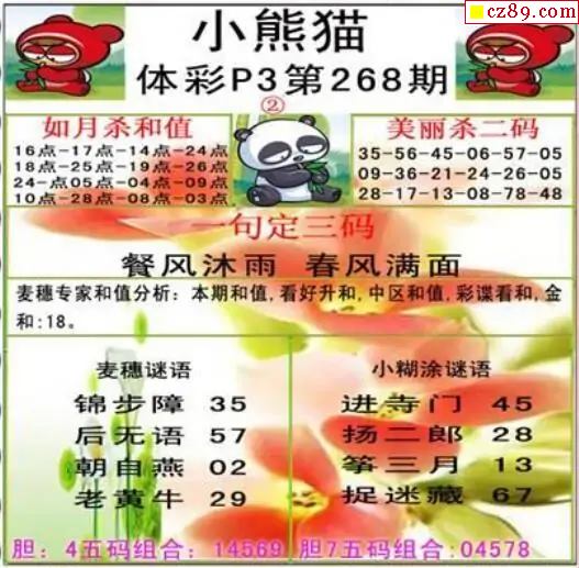 2025年268期牛彩网体彩P3画迷图谜汇总分享
