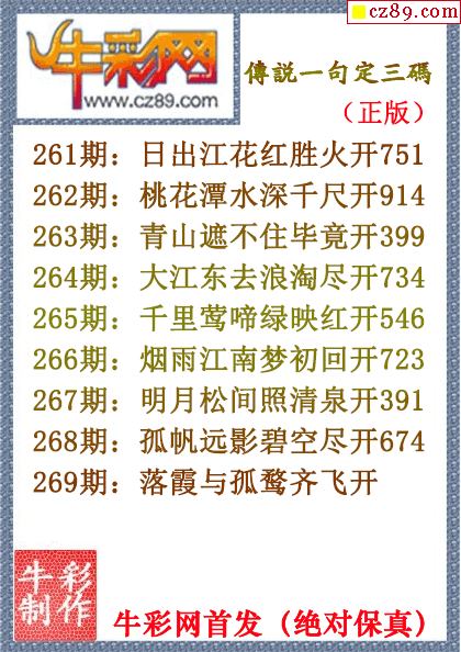 2025年269期牛彩网体彩P3画迷图谜汇总分享