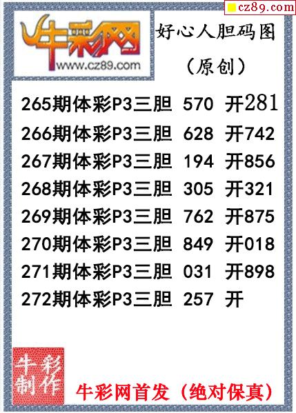 好心人送胆272期体彩p3图谜(原创)