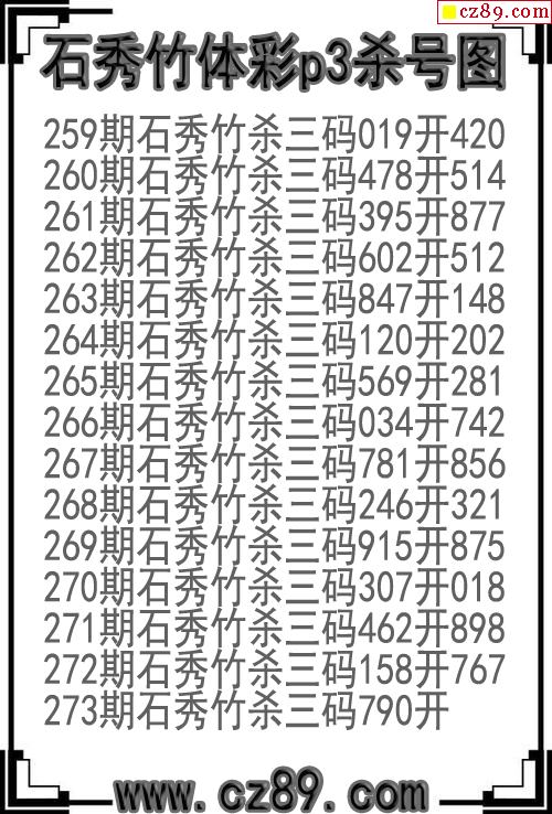 2025年273期体彩P3胆码杀码原创图总汇