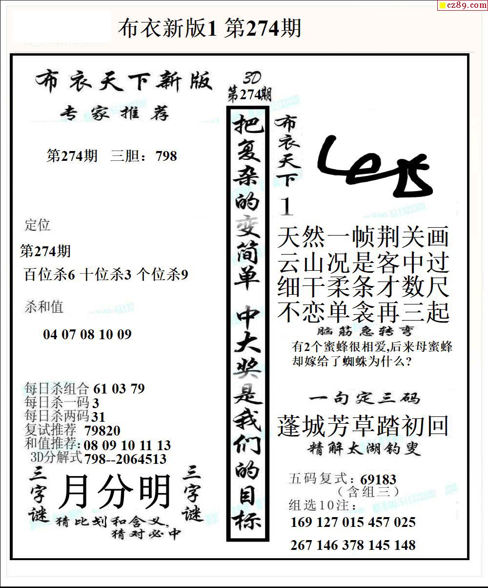 牛彩版3D字谜彩报图25年332期打印版