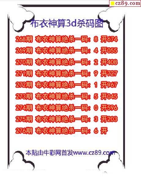 牛彩版3D预测彩报图25年326期打印版