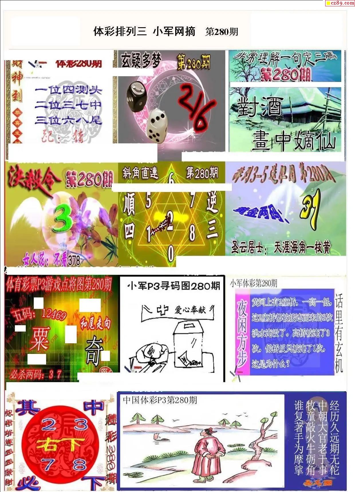 2025年280期牛彩网体彩P3画迷图谜汇总分享
